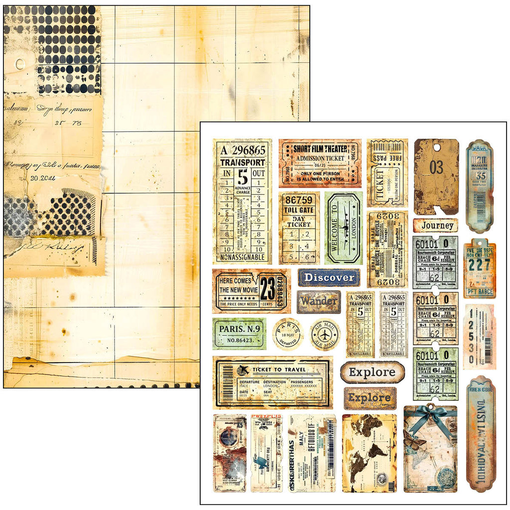 This A4 Mixed Media Book Journey Ahead set includes 50 double-sided pages, including: 39 unique patterned designs and 11 ephemera pages with cards, tags, tickets, fussy-cut elements, and other decorative goodies. Unleash your style with the vintage rustic textures and illustrations. Perfect for junk journal, collage, scrapbooking, cardmaking, mixed media and paper craft arts.