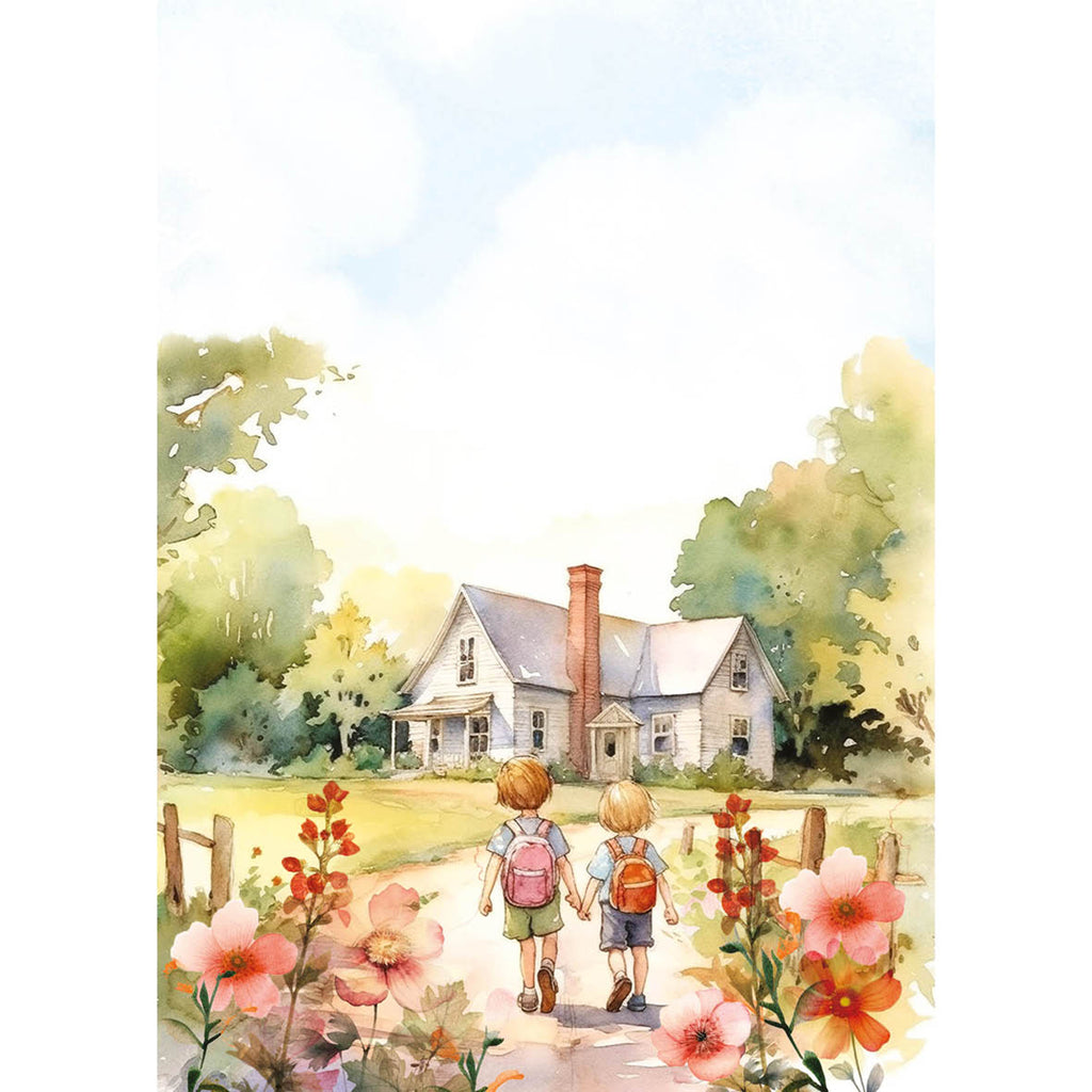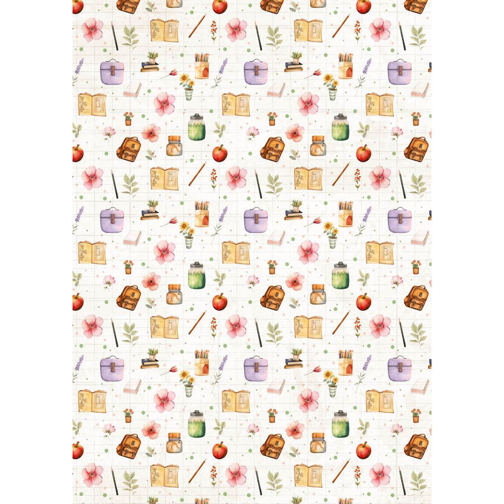 These A5 sheets of rice paper have beautiful back to school imagery featuring a girl and boy, backpacks, a school bus, coloured pencils and so much more. Perfect for back to school themed projects.