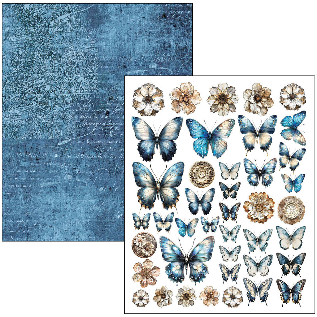 This A4 Mixed Media Book Urban Blue Denim set includes 50 double-sided pages, including: 39 unique patterned designs and 11 ephemera pages with cards, tags, tickets, fussy-cut elements, and other decorative goodies. Unleash your style with the blue hues and the vintage feel textures and illustrations featuring denim, lace, florals, butterflies. Perfect for junk journal, collage, scrapbooking, cardmaking, mixed media and paper craft arts.