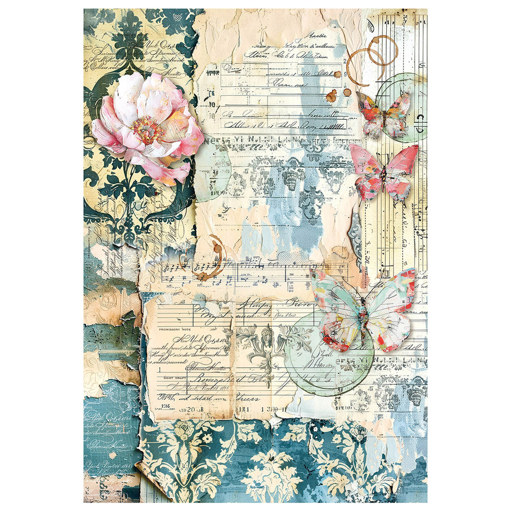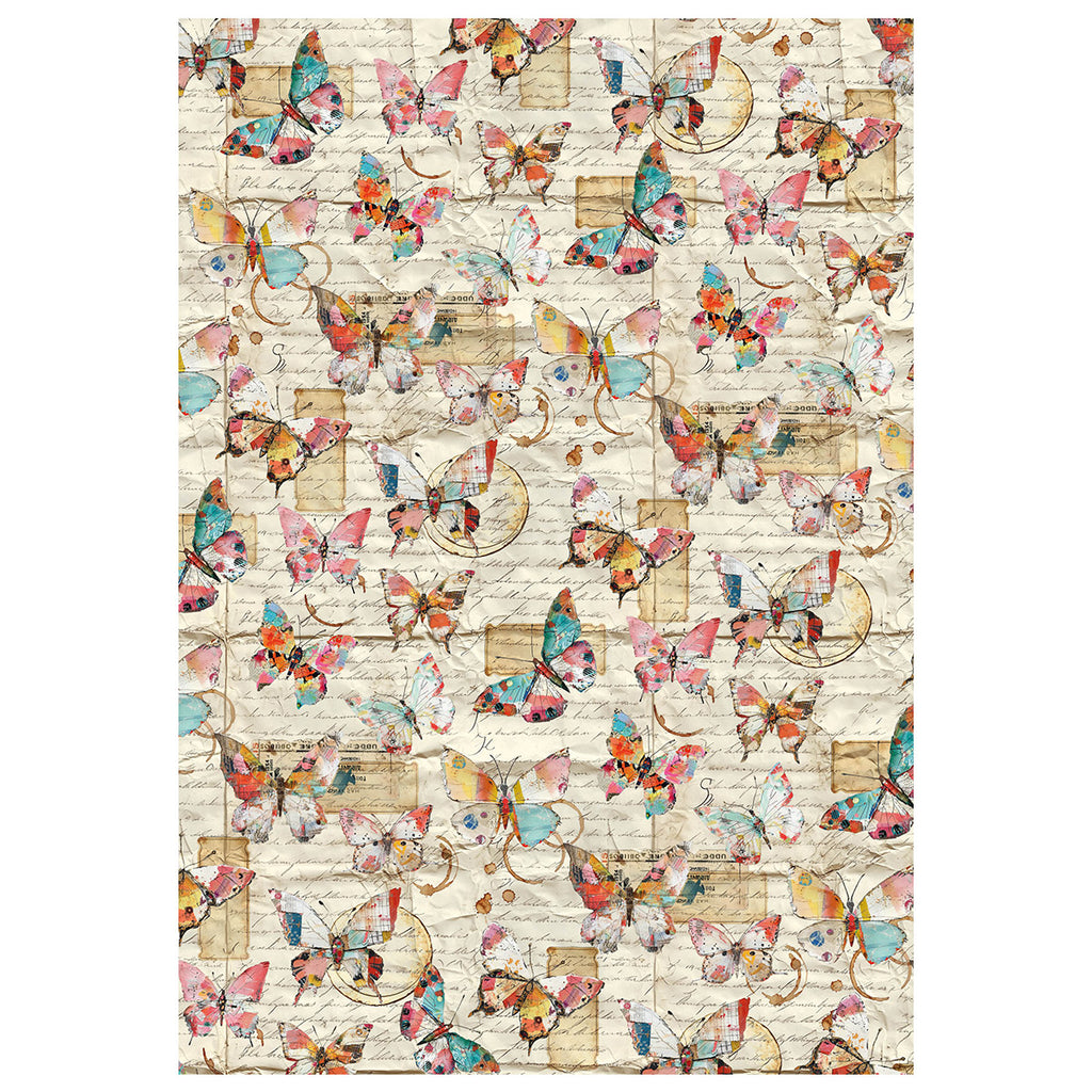These A4 sheets of rice paper have colourful hues with a vintage rustic feel, featuring women, florals, butterflies and more.