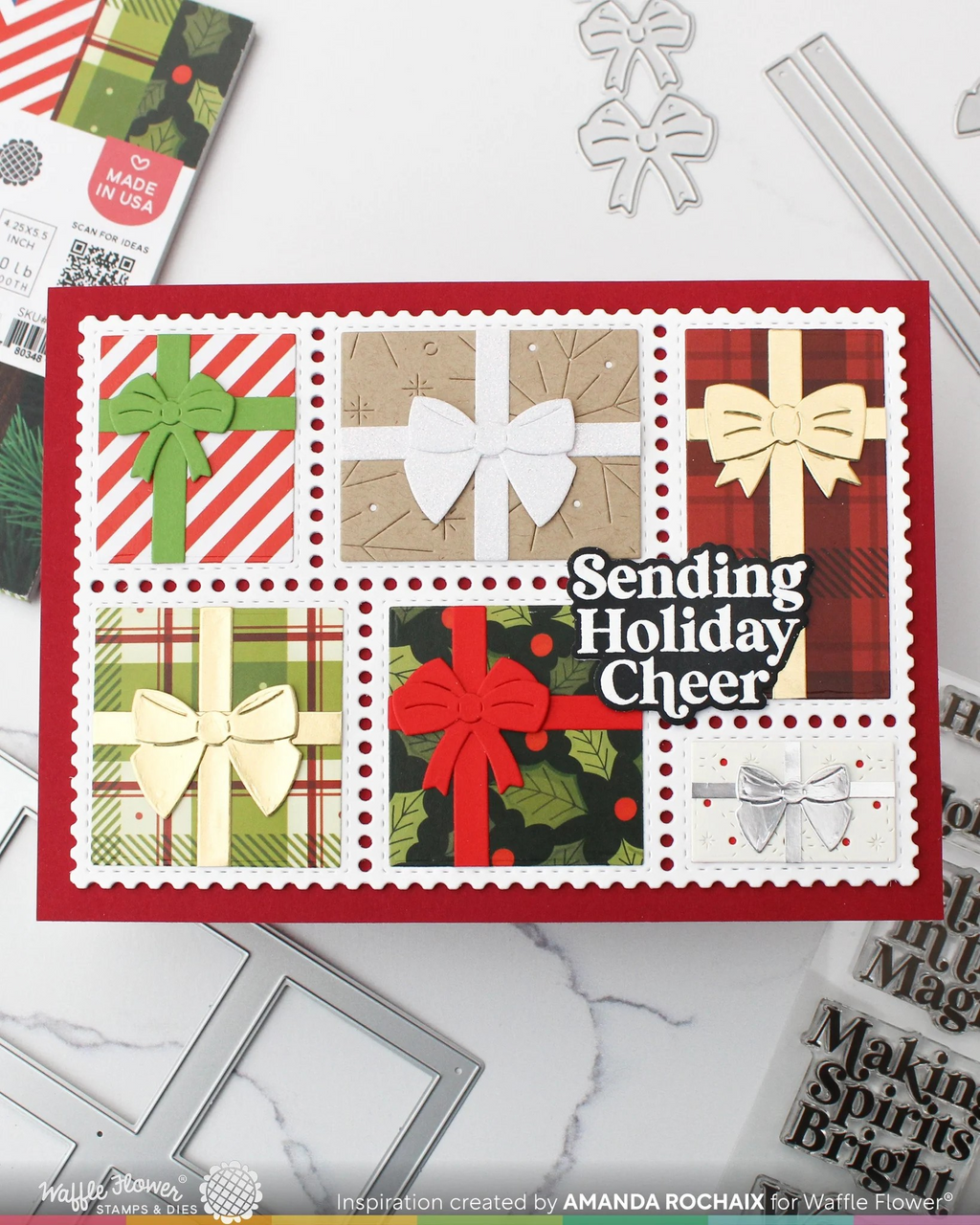 • Die-cut the original panel directly from the frame diecut to create postage-bordered windows.