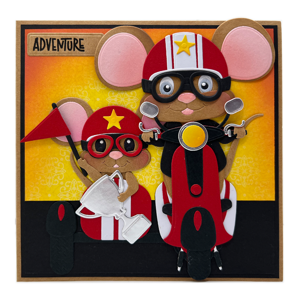 Designed to work with both the Big Mouse (2203) and the Little Mouse (2204) from the Meet the Mice Collection. This set includes layered dies to build a scooter, helmets, and elements like beards and moustaches. Perfect for creating fun scenes with your mice.