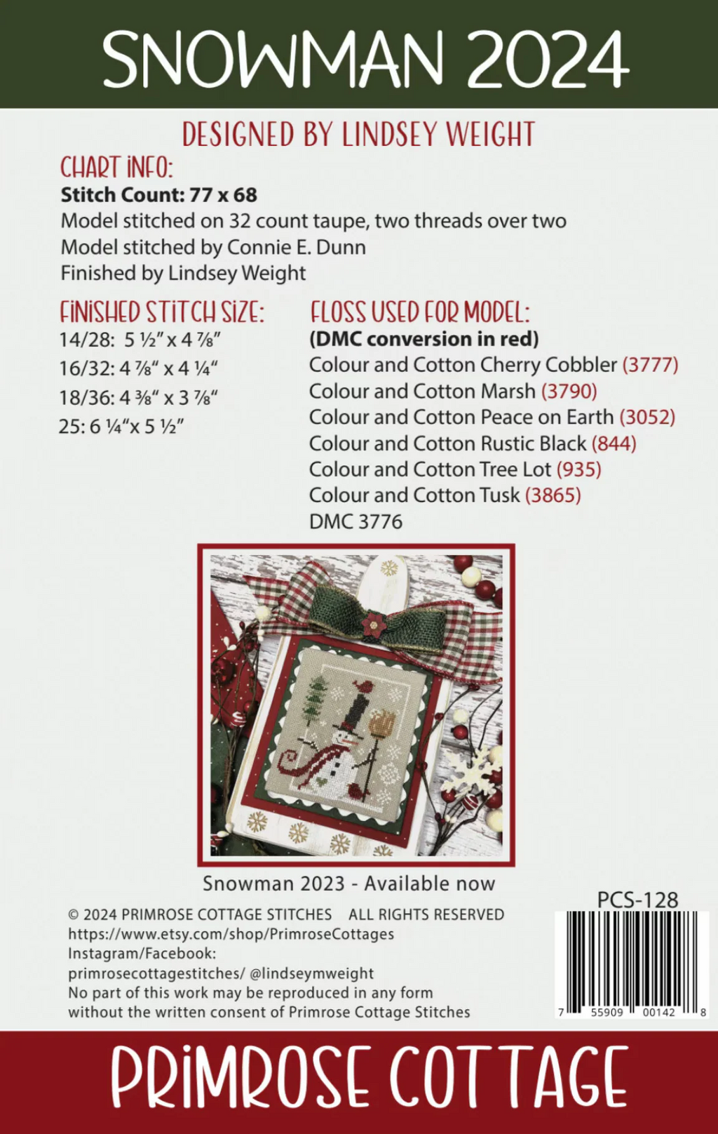 Primrose Cottage Stitches - Snowman 2024, PCS-128 Lindsey Weight