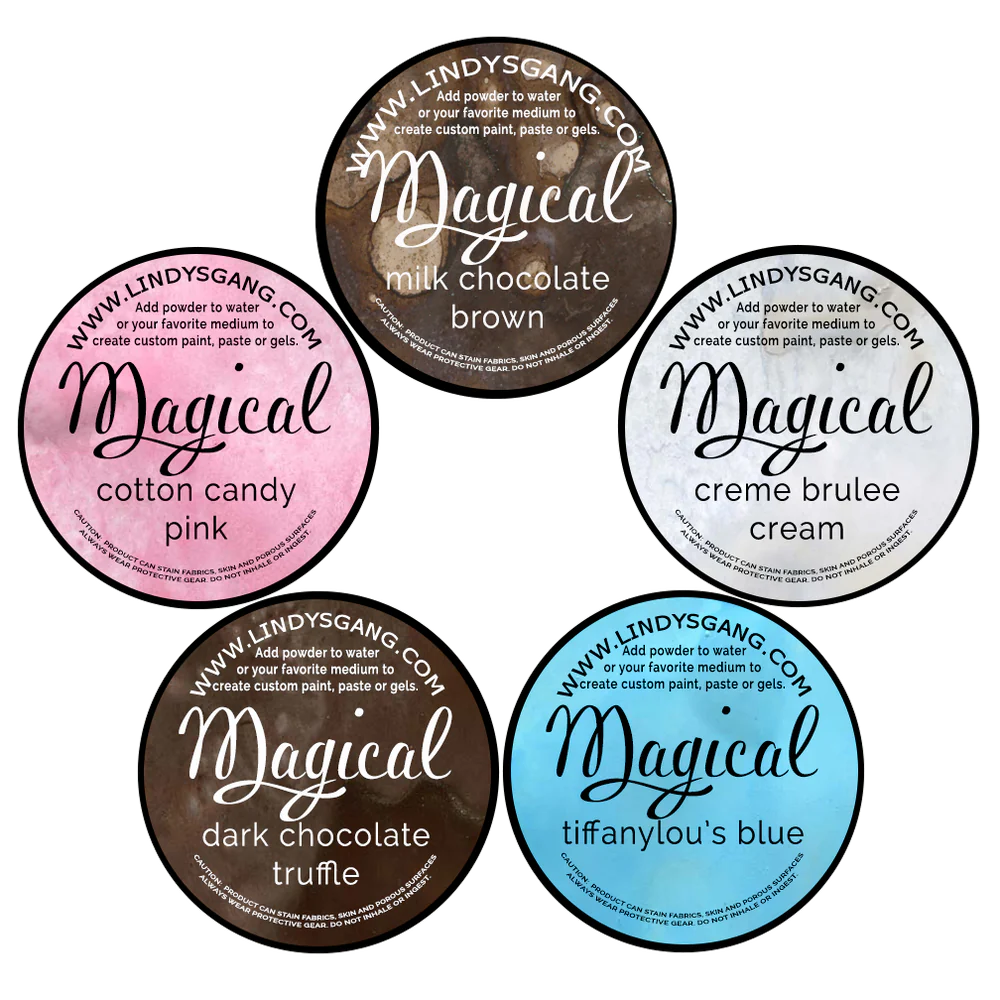Create one-of-a-kind projects with the colors in Sweet Treats Shimmer Magicals Pigment Powder Set. Designed for use on everything from paper to wood, the dye-based powders are non-toxic and acid-free. Sprinkle them directly onto a porous surface and spray it with water for a vibrant stain, or mix them into different mediums to create potent pastes.