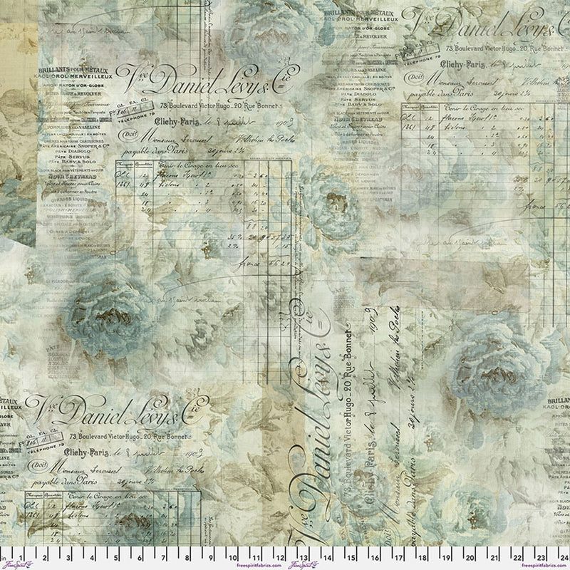 Free Spirit - Eclectic Elements Foundations - Receipt, PWTH102.AQUA1/2 cut in 1/2yd increments Tim Holtz