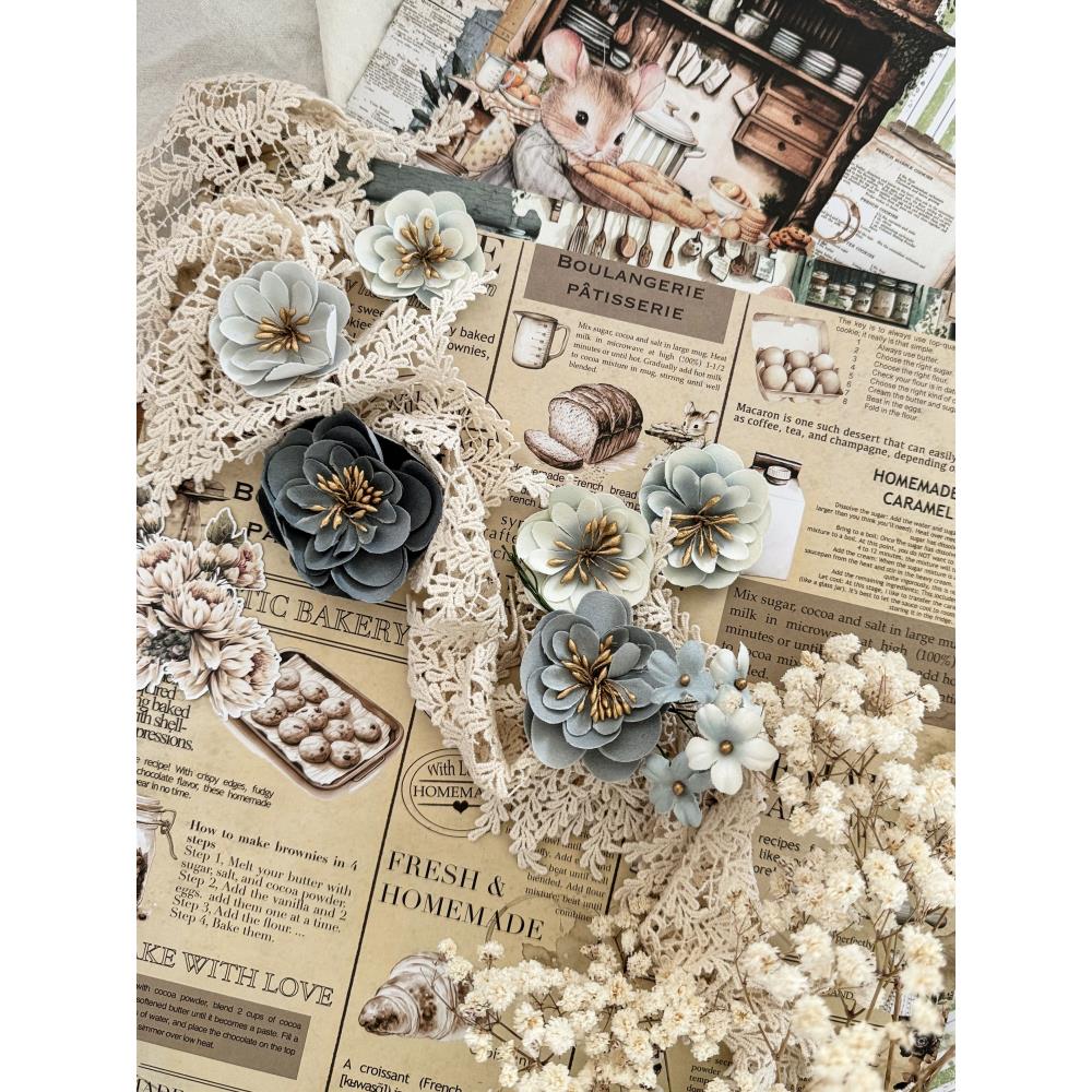 Indulge in the sweetness of the season with the 'Blueberry Frosting' flower pack from our delightful 'The Home Baker' Collection! This scrumptious set includes 9 handmade blooms in a beautiful new and unique shade shade reminiscent of freshly baked blueberry treats. Each flower is carefully crafted to capture the whimsy and charm of the bakery, perfect for adding a touch of farmhouse coziness to your cards, tags, scrapbooks, and more. Created with love, these 'Blueberry Frosting' flowers will are perfect for layering and adding depth and detail to your floral projects