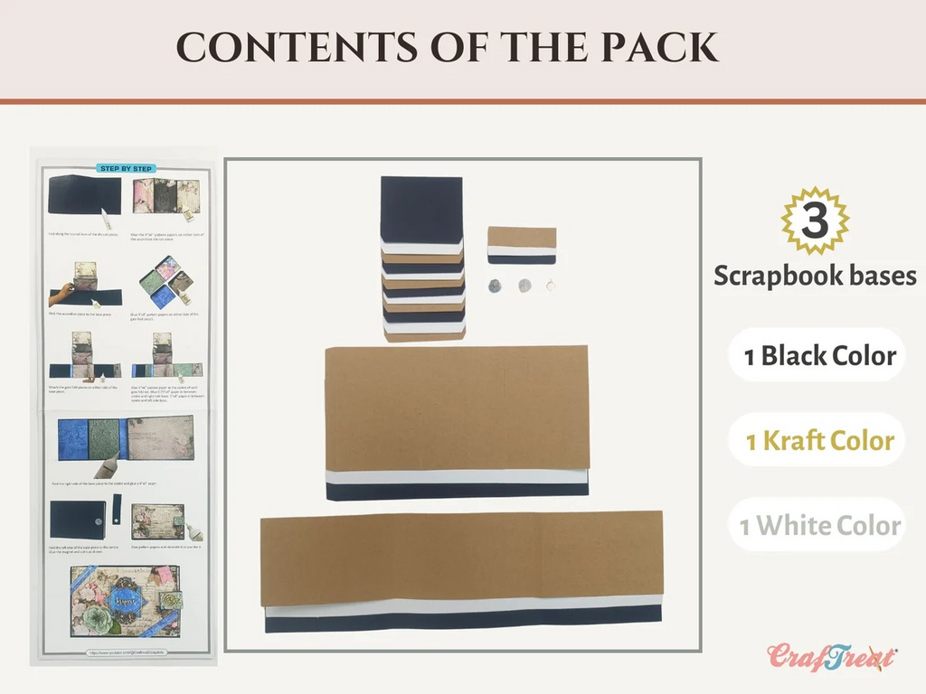CrafTreat Scrapbook Blank Quick Folios - Dreamer - Black, Kraft and White, CQF002