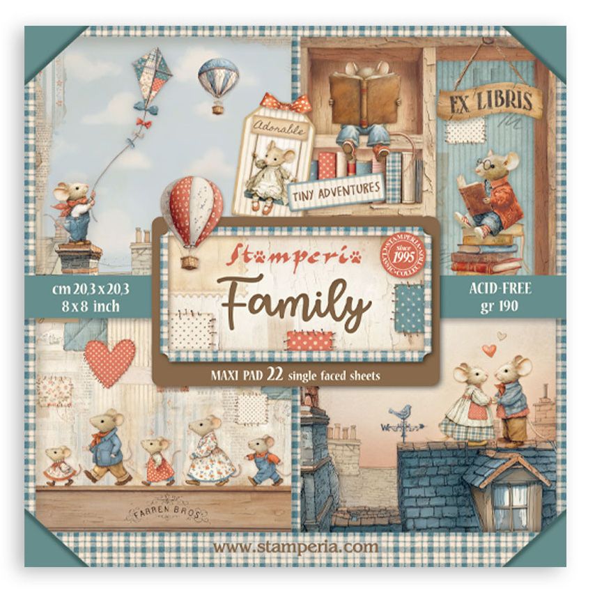 Stamperia 8x8 Maxi Pad 22 S/S Sheets - Family, SBBSXB21