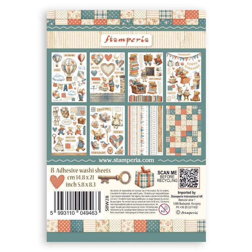 Stamperia - Family Collection - A5 Washi Pad - 8 Adhesive washi sheets, 5.8" x 8.3"