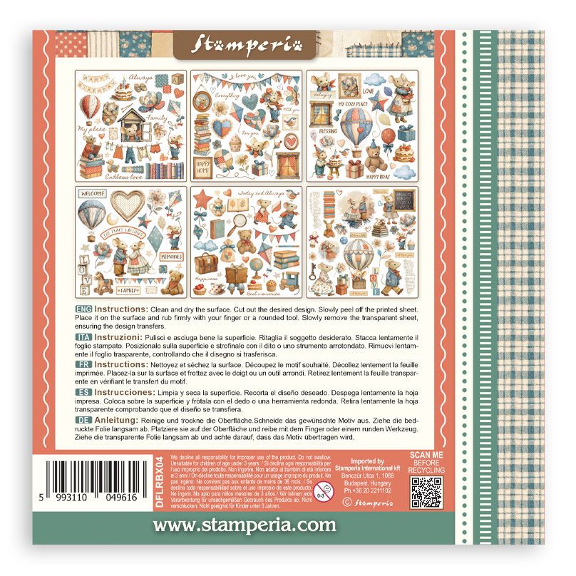 Stamperia - Family Collection - Rub-On Kit - 6 pages 6.1" x 6.1".